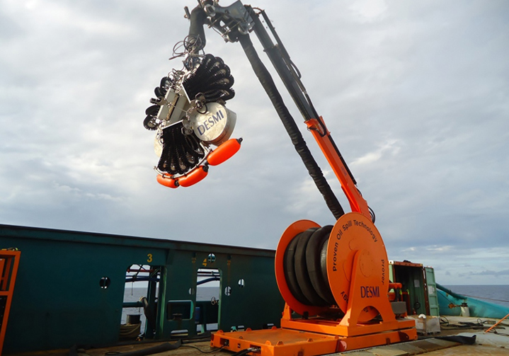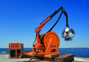 The Giant Octopus LARS is designed for optimal operational efficiency and minimal maintenance and service. The cost of the maintenance and service is extremely low and it does not suffer the expense of more complex systems. The crane and the umbilical hose reel are fixed on a platform that rotate 360° on the flat rack. In addition, the crane can also rotate 360° on the same platform. This way the skimmer is very easy to deploy and recover in all conditions. It also allows for easy cleaning or maintenance. The crane can be transformed to an all purpose deck crane when detached from the umbilical hose and be used for general duty or winch operation. This is due to its’ exceptionally long reach and lifting capacity plus the cranes independent 360o degree operation.