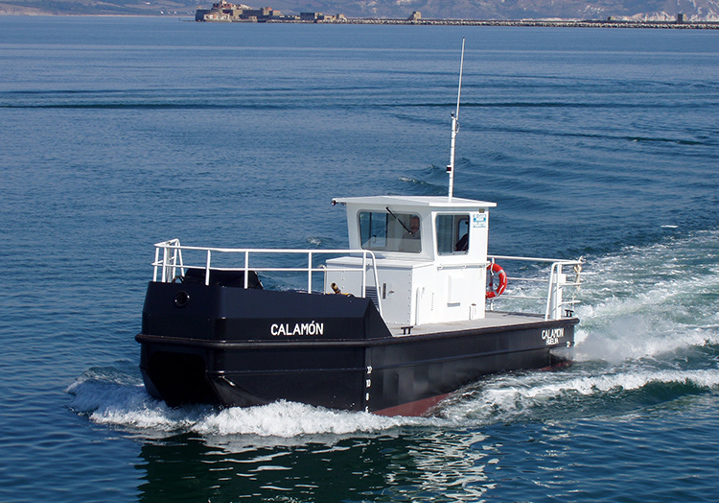 Designed by DESMI the POLLKITTEN follows a long line of oil skimming vessels produced over the last 20 years for oil terminals, harbours and navies around the world. Her sister vessels (POLLCAT and POLLCRAFT) are available in versions from 10 m through to 19 m for complete versatility of usage. Propulsion is by two 40 hp inboard diesel engines providing excellent manoeuvrability and speed in excess of 6 knots.