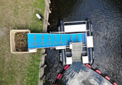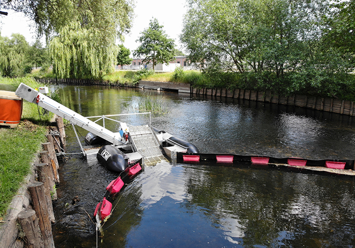 The Rise – A is normally placed closer to the brink and after lifting the debris out of the water, the subsequent belt is transporting the material onto shore. The Rise – A is delivered as a modular concept allowing the second belt to be placed either in right or left direction at the installation time. It can of course be changed if required.